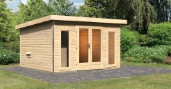 Karibu Sauna Mainburg 4 Naturbelassen Mit Vorraum + 9 KW BIO-Kombiofen Mit Ext. Steuerung Easy