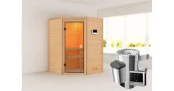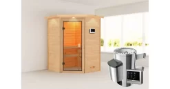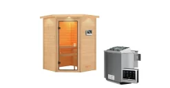 Karibu Ecksauna Antonia + 3,6kW Plug&Play Ofen Externe Steuerung