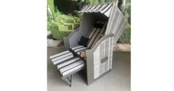 DeVries Strandkorb Cliff XL Kunstoffgeflecht Stone Grey Gestell Grau Lasiert 130cm Breit