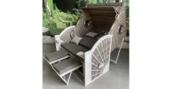 DeVries Strandkorb PURE Seaside XXL SUN Kunstoffgeflecht White Kubu Gestell Washed White