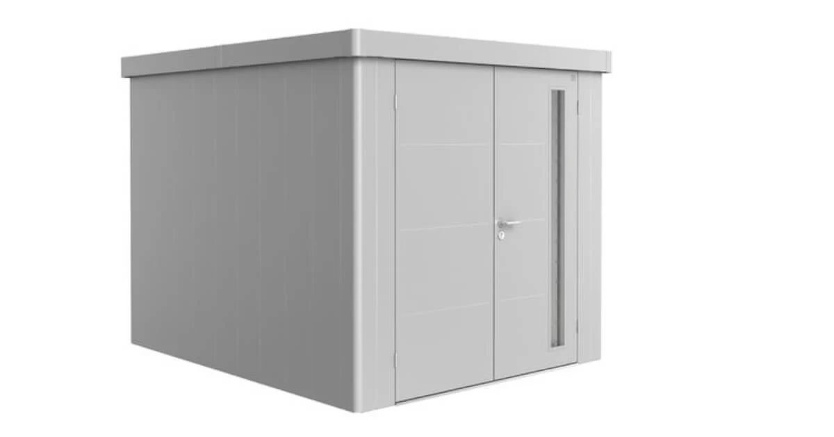 Das Gerätehaus »Neo« macht seinem Namen alle Ehre: Es ist das erste Gerätehaus aus Metall, das den hohen Ansprüchen moderner Architektur gerecht wird. Sein gefälliges Aussehen und seine vielen praktischen Vorzüge für den täglichen Gebrauch garantieren ungetrübte Freude. Die lebenslange Wartungsfreiheit spart Geld und kostbare Freizeit. Eine integrierte 3-fach-Verriegelung mit Edelstahl-Drückergarnitur und Normzylinder schützt Ihre Garten- und Freizeitgeräte vor fremdem Zugriff.