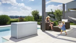 Die LoungeBox® ist der perfekte Stauraum für Sitzkissen und viele Dinge, die sonst keinen Platz haben. Durch die ansprechende Optik passt sie regenwasserdichte Auflagenbox perfekt auf jede Terrasse.
