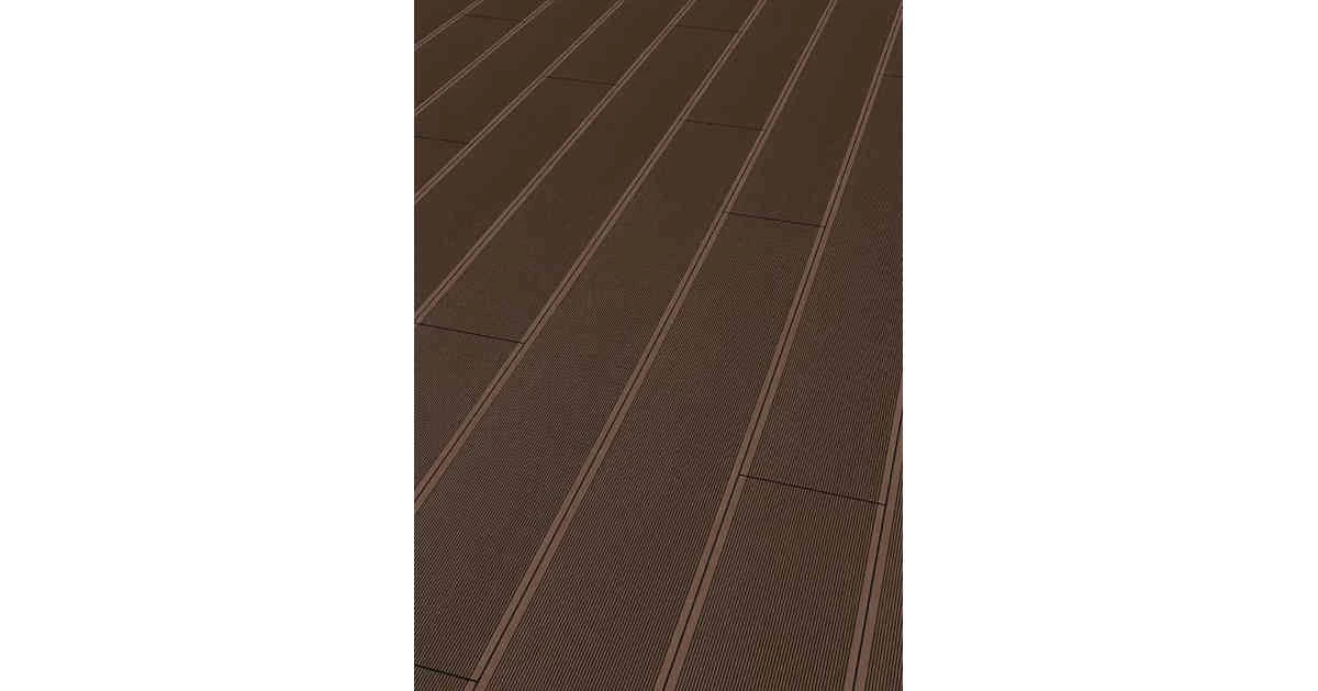 Die Terrassendiele aus Bambus-Kunststoff-Verbundwerkstoff hat eine Größe von 250 x 25 mm (B x H). Die Diele hat eine verstärkte Nutwange für die Clipbefestigung und ist einseitig geriffelt, die andere Seite ist genutet.