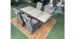 Komfort und Flexibilität werden bei diesem Dining-Set von SIENA GARDEN groĂźgeschrieben – verbringen Sie einzigartige Momente zusammen mit Freunden und Familie. Die moderne Tischgruppe besticht durch höchsten Sitzgenuss. Hier trifft Qualität auf schlichte Eleganz und viel Funktionalität: Die RĂĽckenlehne der bequemen Dining Sessel lässt sich stufenlos verstellen und der Ausziehtisch ist nicht nur optisch ein Highlight, sondern lässt sich ganz nach Bedarf vergrößern. Holen Sie sich mit diesem Dining-Set eine Extraportion Komfort in Ihren Garten.