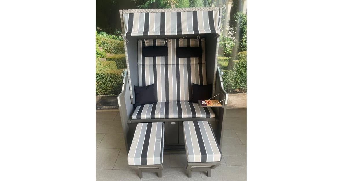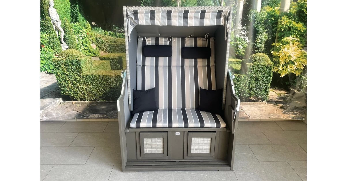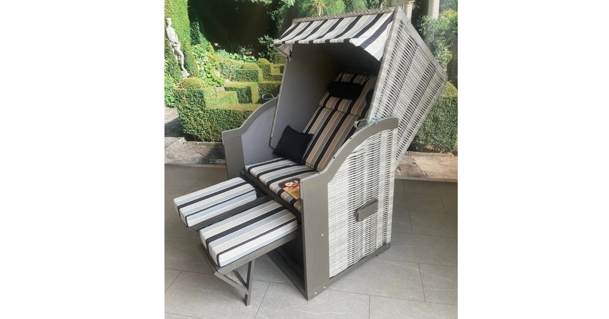 Der Strandkorb wird als Bausatz in einem Karton geliefert inkl. Montage- und Pflegeanleitung