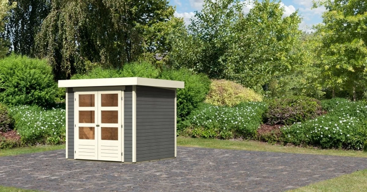 Gartenhaus Askola 2 Aktion Made by Karibu 19mm Wandstärke Terragrau
