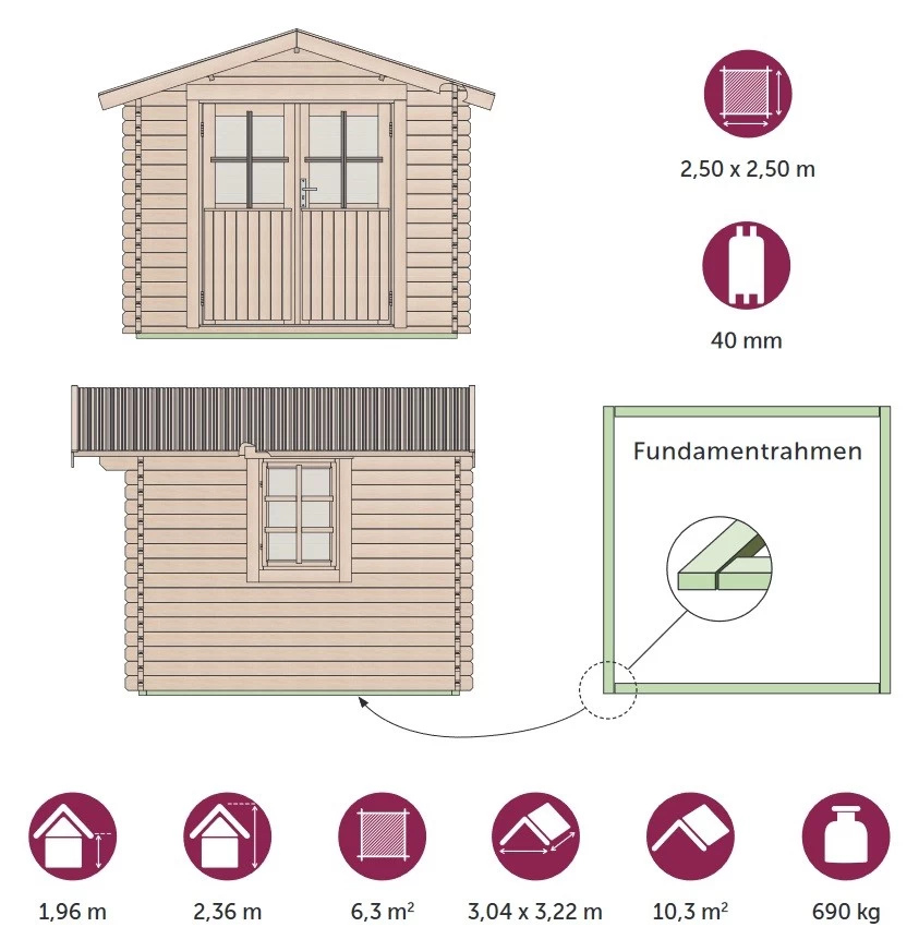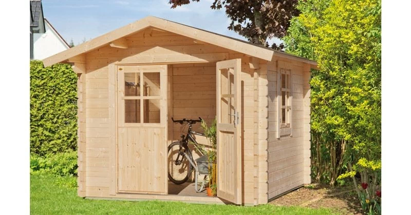 Das moderne Blockbohlenhaus mit einer Wandbohlenstärke von 40 mm bietet Ihnen ausreichend Stauraum.