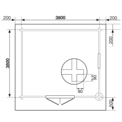 - Sockelmaß: ca. B 380 x T 380 cm