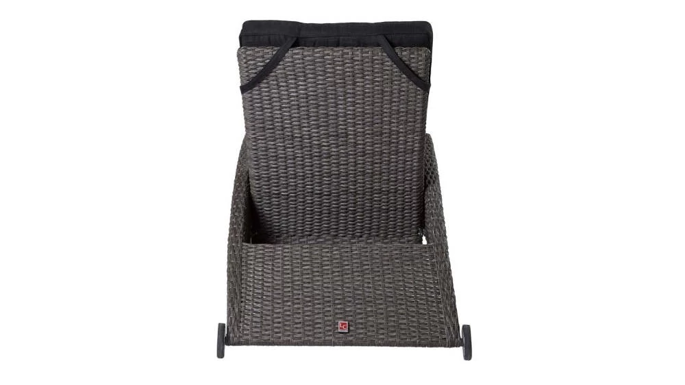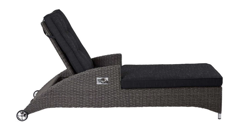 - Handgeflochtene Relaxliege aus strapazierfähigen grau-mix Kunststofffasern in Rattanoptik.
