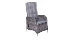 - Handgeflochtener Gartenstuhl aus strapazierfähigen omega grau Kunststofffasern in Rattanoptik.
