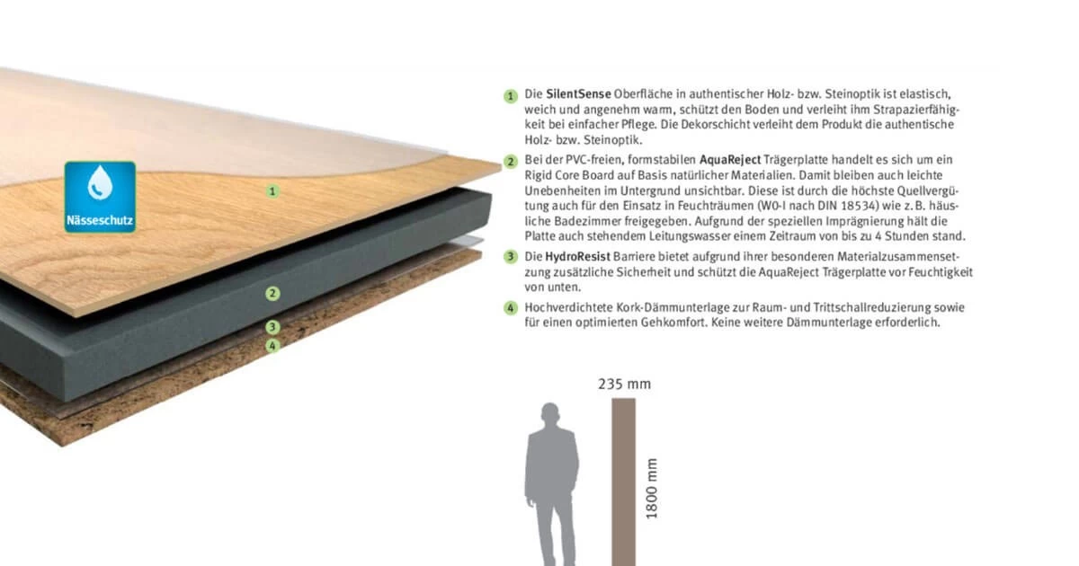 - SilentSense Oberfläche für einen weichen und angenehm fußwarmen Auftritt