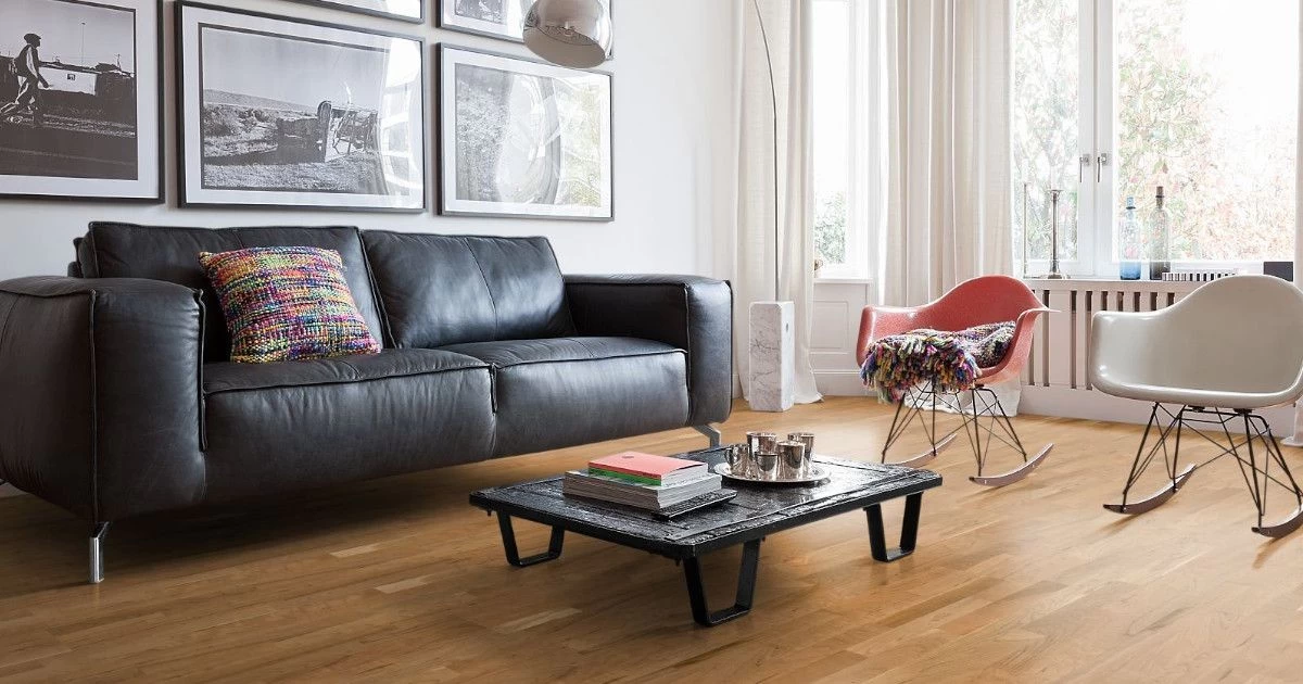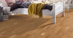 Dieser Parkettboden von HARO besitzt eine Edelholzschicht aus sorgfältig ausgewählten Hölzern. Die Permadur Versiegelung sorgt fĂĽr einen pflegeleichten und strapazierfähigen Parkettboden. Die hochwertigen Acrylharze bilden auf dem Holz eine schĂĽtzende Lackschicht. Der Boden ist dreischichtig aufgebaut. Die Vollholz-Trägerschicht kommt der Stabilität zugute. AuĂźerdem sind die einzelnen Parkettdielen mit dem HARO Top-Connect Verbindungssystem ausgestattet. Sie lassen sich unkompliziert auf einer Trittschalldämmung verlegen.Â