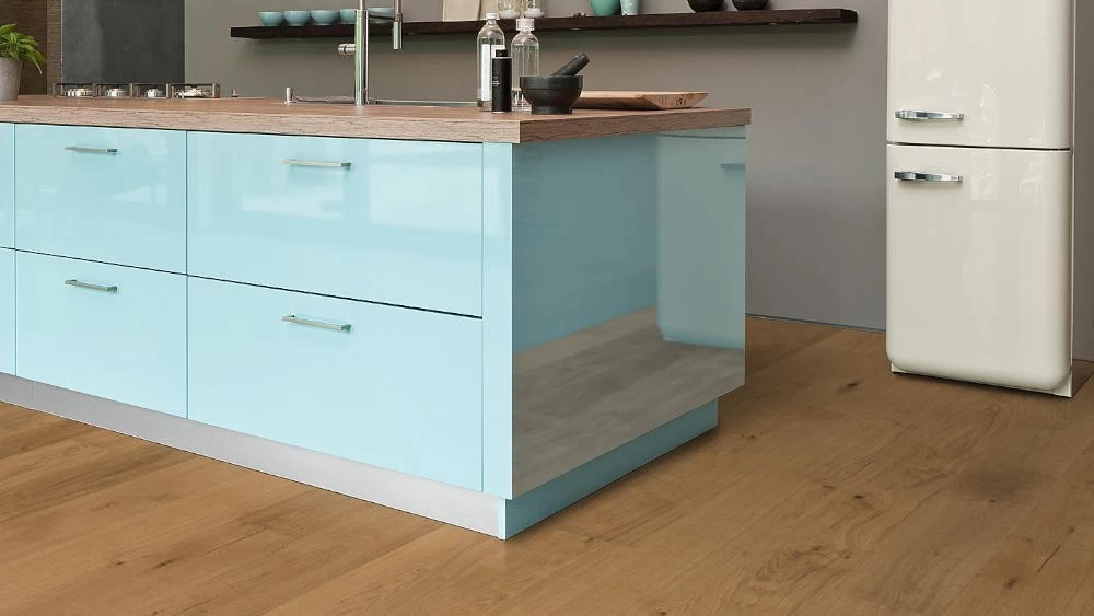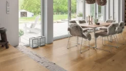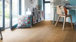 Dieser Parkettboden von Haro besitzt eine Edelholzschicht aus sorgfältig ausgewählten Hölzern. Das revolutionäre Premium-Oberflächen-finish naturaDur begeistert mit seiner Schönheit und mit der sanften Haptik einer Naturöloberfläche. Gleichzeitig ist das Finish eine widerstandsfähige Spezial-Versiegelung, die den Parkettboden vor Gebrauchsspuren schützt un seine Pflegeleichtigkeit erhöht. Der Boden ist dreischichtig aufgebaut. Die Vollholz-Trägerschicht kommt der Stabilität zugute. Außerdem sind die einzelnen Parkettdielen mit dem HARO TopConnect-Verbindungssystem ausgestattet. Sie lassen sich unkompliziert auf einer Trittschalldämmung verlegen.