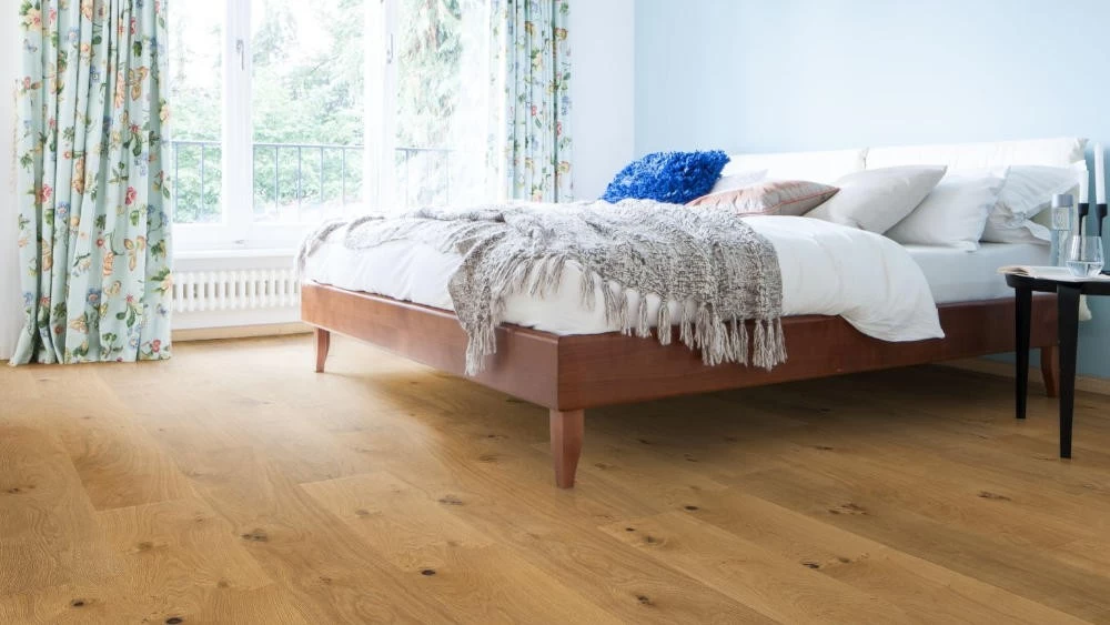 - Lebhafte Holzstruktur mit authentischen Astanteilen und einer größeren Anzahl an schwarz gekitteten Rissen