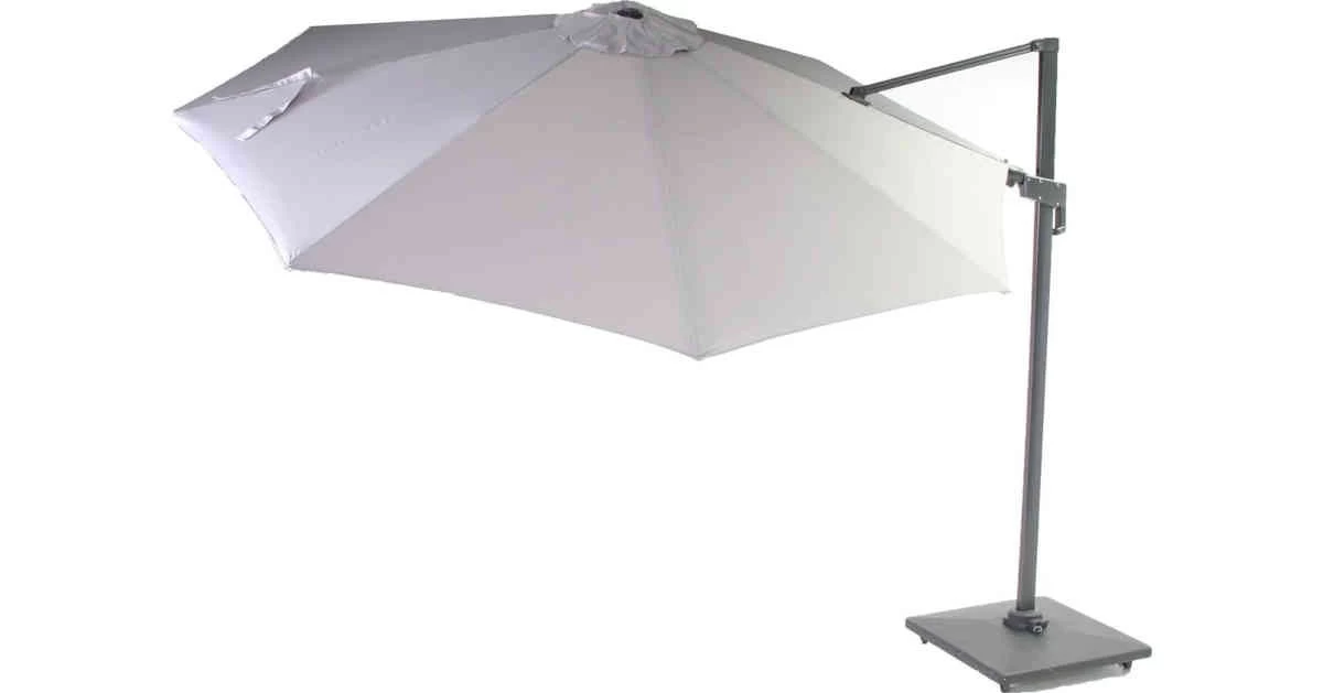 Der Honolulu-Sonnenschirm bietet Ihnen Sonnenschutz an sonnigen Tagen. Dieser Sonnenschirm hat ein Gestell aus Aluminium und ein graufarbenes, graues Polyestergewebe (200 Gramm), das auch UV-beständig ist. Dieser Ampelschirm ist schwenkbar und um 360 Grad drehbar. Um einen sicheren Stand zu garantieren sind bis zu 4 Fliesen zur Beschwerung notwendig.
