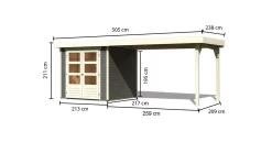 Karibu 19mm Gartenhaus Askola 2 Terragrau mit 2,80m Anbau