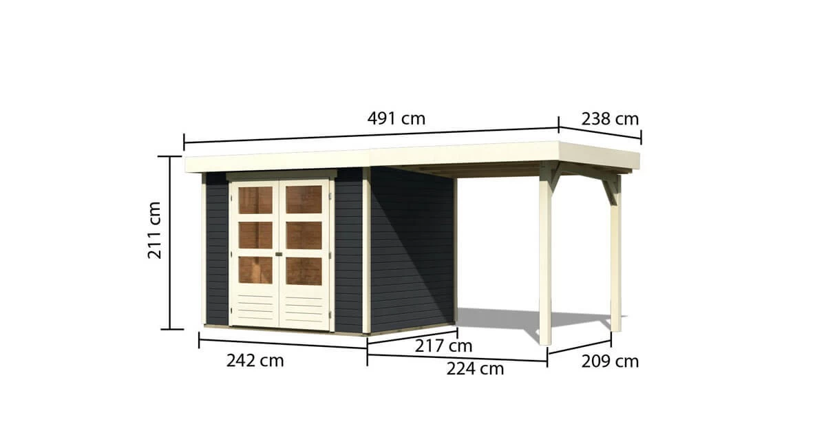 Karibu 19mm Gartenhaus Askola 3 mit 2,40m Anbau Anthrazit