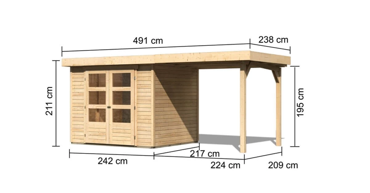 Karibu 19mm Gartenhaus Askola 3 mit 2,40m Anbau