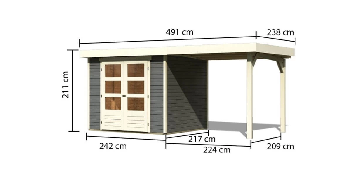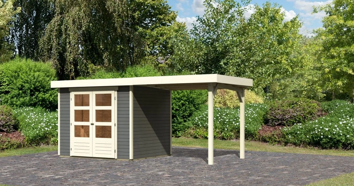 Karibu 19mm Gartenhaus Askola 3 mit 2,40m Anbau Terragrau