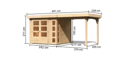 Karibu 19mm Gartenhaus Kerko 3 mit Anbau 2,40m