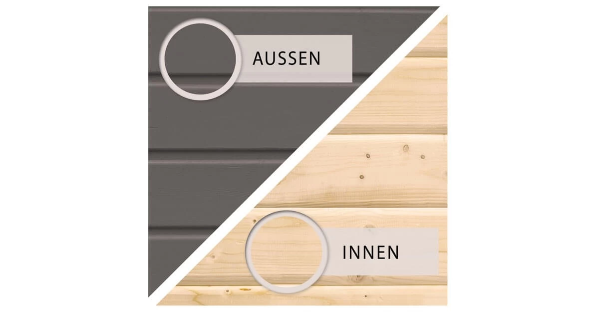 Hinweis: Die Wandinnenseiten, das Dach, der Boden und die Schnittkanten sind aus produktionstechnischen GrĂĽnden nicht endbehandelt und stellen somit einen Unterschied zur AuĂźenseite dar. (Diese mĂĽssen nachbehandelt werden)