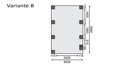 - Dachüberstand: Vorne: 800 mm; Hinten: 50 mm; Links und Rechts: 170 mm