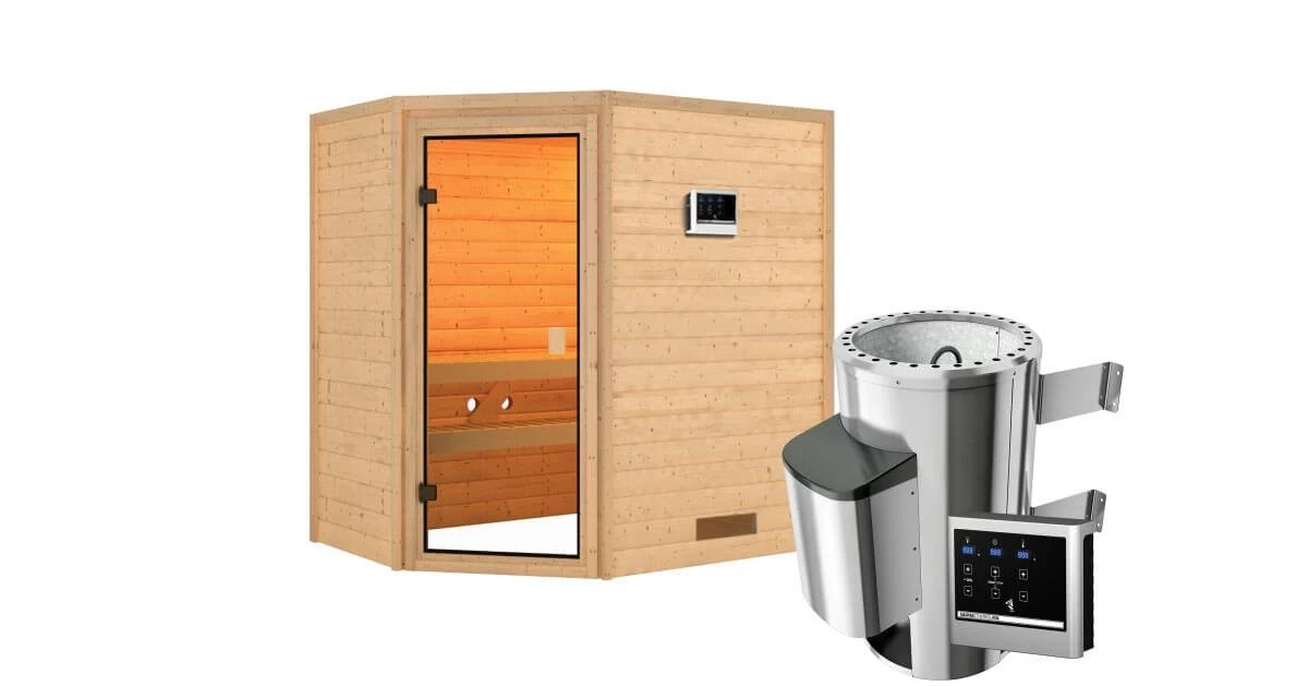 Karibu 38mm Massivholzsauna Jella mit 3,6kW Saunaofen