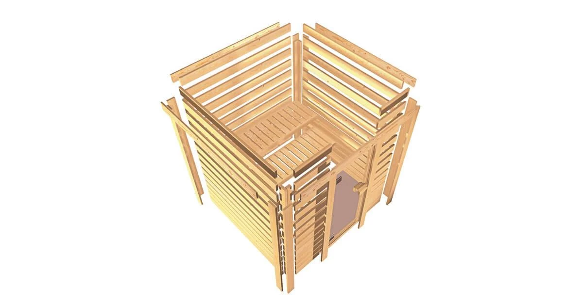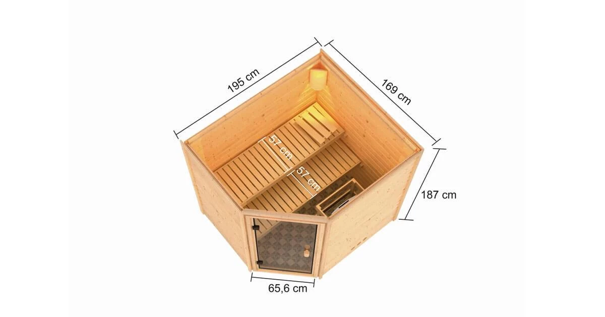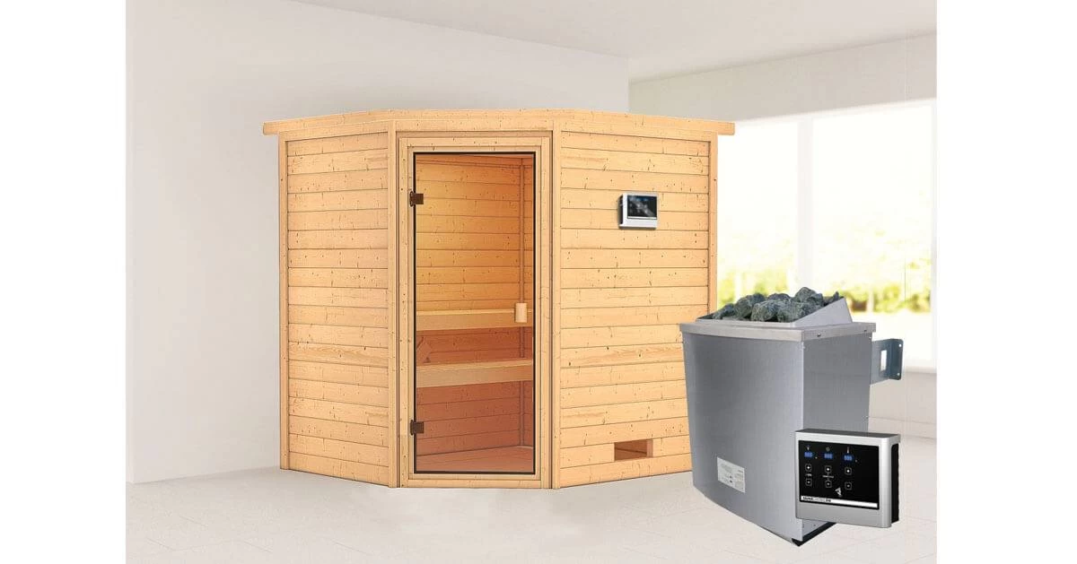 Karibu 38mm Massivholzsauna Elea + 9kW Saunaofen mit externer Steuerung Easy