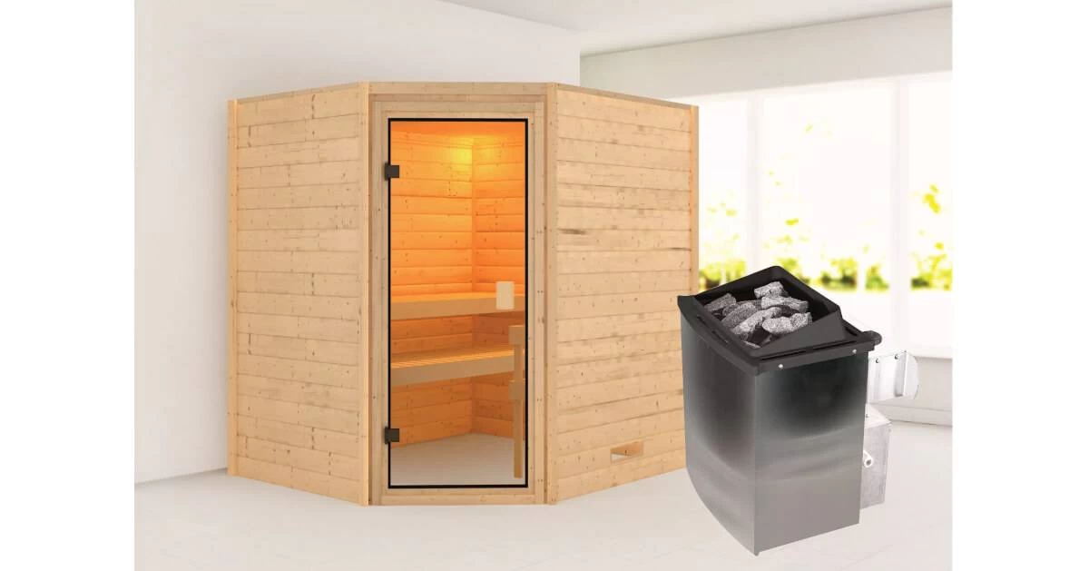 Karibu 38mm Massivholzsauna Elea + 9kW Saunaofen mit integrierter Steuerung