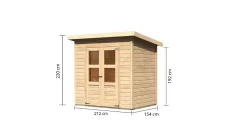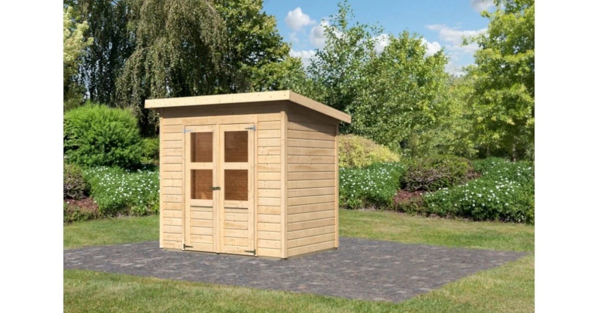 Das Gartenhaus mit optionalem Anbau. Ein Gartenhaus zum Verstauen der Gartengeräte und ein schĂĽtzendes Dach fĂĽr das Spielzeug Ihrer Kleinen oder als Unterstand fĂĽr Fahrräder. Diese und noch viele weitere Möglichkeiten bietet das Gartenhaus Merseburg 3. Durch sein naturbelassenes Holz kann es durch einen farblich individuellen Anstrich auf Ihr Gartenambiente abgestimmt werden. Das Gartenhaus Merseburg setzt Ihnen hier keine Grenzen. Der Innenraum mit den MaĂźen (BxT) 205x147cm, bietet ausreichend Platz fĂĽr Ihre Gegenstände. Das Haus wird von unten mit kesseldruckimprägnierten Bodenbalken geschĂĽtzt. Von oben bietet das Pultdach Schutz vor der Witterung. Die DoppelflĂĽgeltĂĽr mit zwei Lichtausschnitten je TĂĽrflĂĽgel und einer SicherheitsĂĽberfalle lässt viel Tageslicht in das Innere und bietet so eine natĂĽrliche Lichtquelle. Reicht Ihnen der Platz im Inneren nicht aus können Sie das Gartenhaus Merseburg 3mit einem optional erhältlichen Anbaudach erweitern. Das Anbaudach hat eine Breite von 166cm und eignet sich ideal als Unterstellmöglichkeit fĂĽr größere Gegenstände. Das Gartenhaus Merseburg 3 – ein Gartenhaus mit optionalem Anbau.