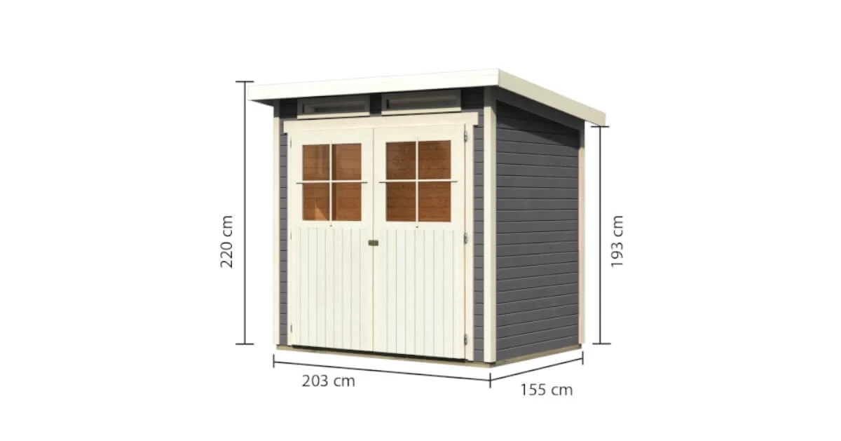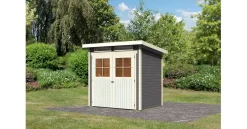 Das 19mm Gartenhaus Glücksburg 2 aus nordischer Fichte wird im Steck-/Schraubsystem montiert. Das Pultdachhaus ist in der Farbe terragrau sowie in naturbelassen erhältlich. Egal ob klassisch, modern oder elegant, hier ist garantiert für jeden etwas dabei. Die klassische Doppelflügeltür mit einem Lichtausschnitt pro Türflügel, sowie die feststehenden Oberlichtfenster aus bruchsicherem Kunstglas sorgen für ausreichend Licht im inneren. Der großzügig geschnittene Innenraum mit Maßen von 148 x195cm bietet genügend Platz für Ihre Gartengeräte. Auch die Einrichtung einer kleinen Sitzgruppe ist möglich. So können Sie sich Ihr Gartenhaus nach den eigenen Vorstellungen einrichten und gestalten. Sollte der Platz im Inneren nicht ausreichen besteht die Möglichkeit eines zusätzlichen Anbaudaches. Dieses dient als weitere Unterstellmöglichkeit von Ihren Gartenutensilien und hat eine Breite von 190 cm. Das Pultdachhaus mit einer Dachfläche von 4,2m² bietet den Gegenständen im Inneren Schutz vor der Witterung. Von unten schützen kesseldruckimprägnierte Bodenbalken vor aufsteigender Nässe. Mit dem optional erhältlichen Fußboden oder unserer selbstklebenden Dachfolie können Sie das Gesamtbild abrunden. Sorgen Sie für Ordnung in Ihrem Garten und schützen Sie Ihre Gartengeräte und möbel mit dem Gartenhaus Glücksburg 2.
