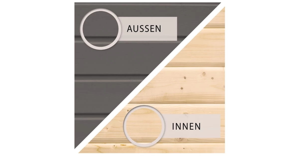 - Dach: 16mm Massivholz Satteldach