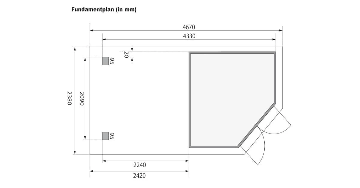 - Sockelmaß: ca. B 429 x T 213 cm