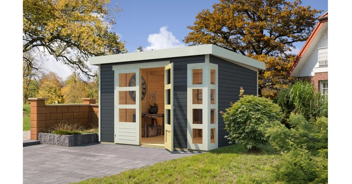 Bringen Sie die Sonne in Ihren Garten mit der modernen Fensterecke und dem Gartenhaus Kerko 6.