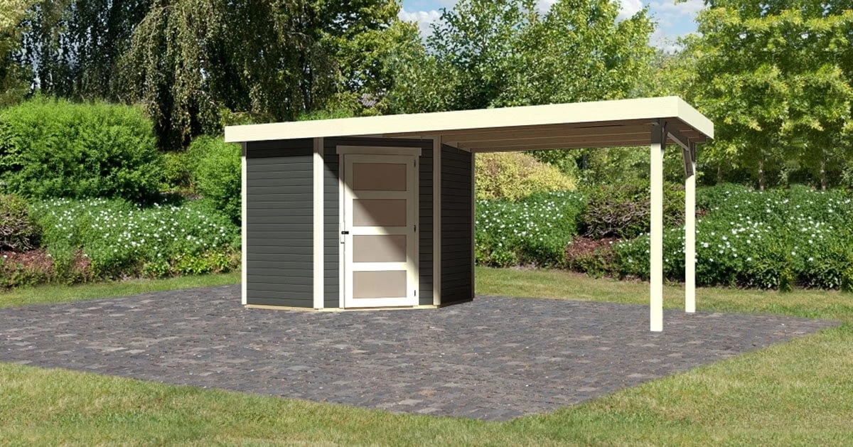 Karibu Gartenhaus 19mm Wandstärke Schwandorf 3 mit Anbau 2,80m Terragrau