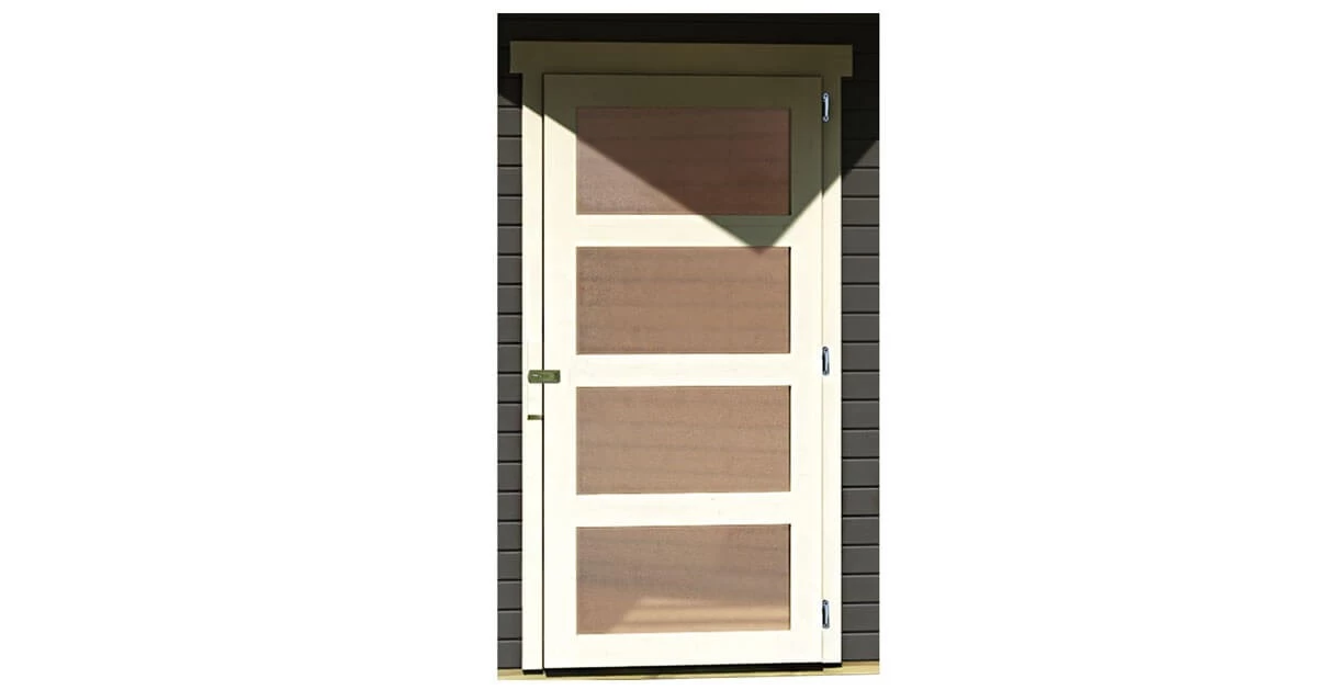 Nutzen Sie die Ecke Ihres Gartens sinnvoll mit dem Gartenhaus Schwandorf 5. Die moderne Ecktür mit vier Lichtausschnitten in Milchglasoptik sorgt für einen echten Hingucker in Ihrem Garten. Ob modern oder klassisch, das Gartenhaus Schwandorf passt bestimmt in jedes Ambiente. Wählen Sie die Farbe terragrau oder gestalten Sie das naturbelassene Gartenhaus nach Ihren eigenen Farbvorstellungen. Mit einem Außenmaß von (BxT) 242x246cm hat das Gartenhaus die optimale Größe für viele Gestaltungsmöglichkeiten. Nutzen Sie es zum Beispiel als Unterstand für Ihre Gartengeräte oder als kleines Gärtnerhaus. Durch ein Anbaudach kann auch der Platz vor dem Gartenhaus sinnvoll ausgenutzt werden. Das Schleppdach ist in der Breite 2,40m oder 2,80m erhältlich. Die optionale Seiten- und Rückwand schützt die Gegenstände unter dem Schleppdach zusätzlich vor Regen und Wind. So muss der Grillabend auch bei einem Wetterumschwung nicht unterbrochen werden. Von unten wird das Gartenhaus durch kesseldruckimprägnierte Bodenbalken vor Feuchtigkeit geschützt. Nutzen Sie den neu gewonnen Platz als gemütlichen Rückzugsort zur Entspannung oder vielleicht doch als Bastelwerkstatt mit überdachtem Außenbereich? Das Gartenhaus Schwandorf 5 richtet sich ganz nach Ihren Wünschen.