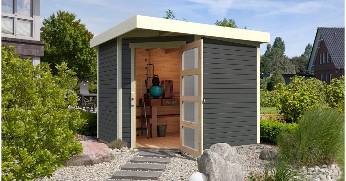 Karibu Gartenhaus 19mm Wandstärke Schwandorf 5 Terragrau