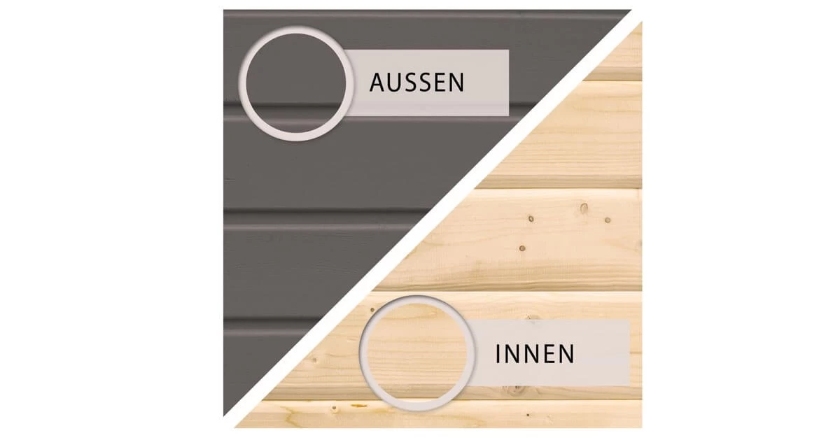 Hinweis: Die Wandinnenseiten, das Dach, der Boden und die Schnittkanten sind aus produktionstechnischen GrĂĽnden nicht endbehandelt und stellen somit einen Unterschied zur AuĂźenseite dar. (Diese mĂĽssen nachbehandelt werden)