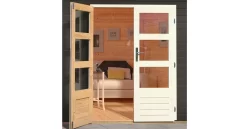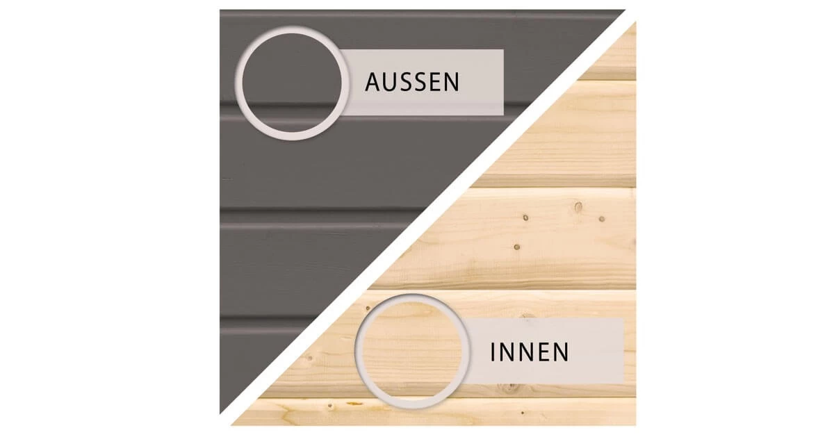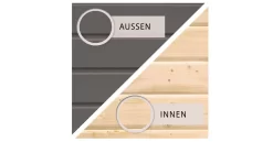 Hinweis: Die Wandinnenseiten, das Dach, der Boden und die Schnittkanten sind aus produktionstechnischen Gründen nicht endbehandelt und stellen somit einen Unterschied zur Außenseite dar. (Diese müssen nachbehandelt werden)