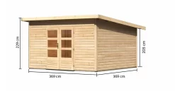 Ein stabiles Pultdachhaus mit vielen Möglichkeiten. Das Gartenhaus Northeim 5 besteht aus 38mm Massivholzbohlen mit Doppelnut und -feder. Das Haus aus nordischer Fichte ist in naturbelassen oder in der modernen Farbe terragrau erhältlich. Durch die Stärke der Bohlen gewinnt das Gartenhaus an Stabilität und dient so ideal als zweites kleines Heim im eigenen Garten. Durch die vielen verschiedenen Größen, in denen das Northeim erhältlich ist, passt es in nahezu jeden Garten. Dank der DoppelflĂĽgeltĂĽr mit drei Lichtausschnitten pro TĂĽrflĂĽgel und Buntbartschloss gelangt das Tageslicht in den Innenraum und sorgt fĂĽr eine natĂĽrlich Lichtquelle. FĂĽr noch mehr Helligkeit im (BxT) 357x357cm groĂźen Innenraum können zum Beispiel zwei optional erhältliche längliche Dreh-/Kippfenster neben der TĂĽr montiert werden. Dies öffnet die Front des Hauses optisch und lässt von innen einen weiten Blick in Ihren Garten zu. Die AuĂźenfläche des Gartenhauses Northeim 5 kann durch ein Anbaudach erweitert werden und bietet so noch mehr Platz. Dieser kann sinnvoll als Unterstand fĂĽr Gartengeräte genutzt werden oder fĂĽr eine gemĂĽtliche Sitzgruppe als Schutz vor dem Regen dienen. Das Gartenhaus Northeim 5 – das stabile Pultdachhaus mit vielen Möglichkeiten fĂĽr Ihren Garten.