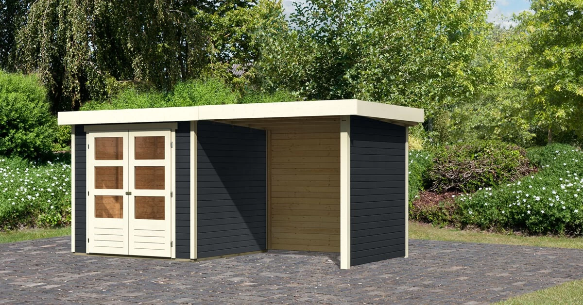 Karibu 19mm Gartenhaus Askola 2 mit 2,40m Anbau Anthrazit