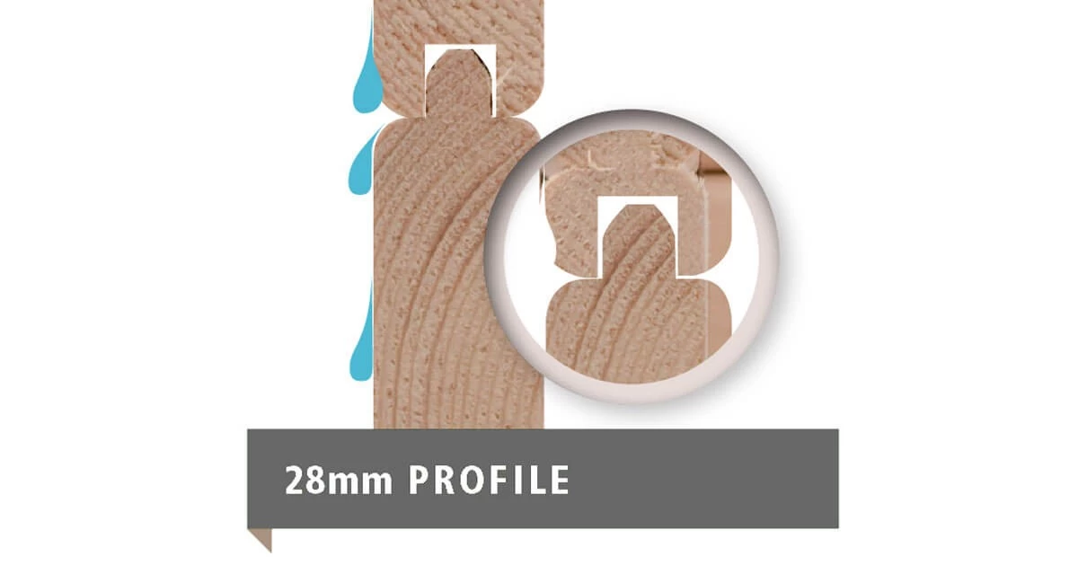 Dieser Schutz gegen Witterung, Schädlinge und mechanische Beschädigungen ist nur vor der Montage zu erzielen. Nachträglich behandeltes Holz weist bei Klimaschwankungen schnell den bekannten Nadelstreifeneffekt auf und macht ungeschützte Bereiche sichtbar. Geschützte Elemente dagegen sind wasserabweisend, maximal UV-geschützt, offenporig, feuchtigkeitsregulierend und lichtecht. Sie überzeugen zudem durch besonders gleichmäßige Oberflächen.