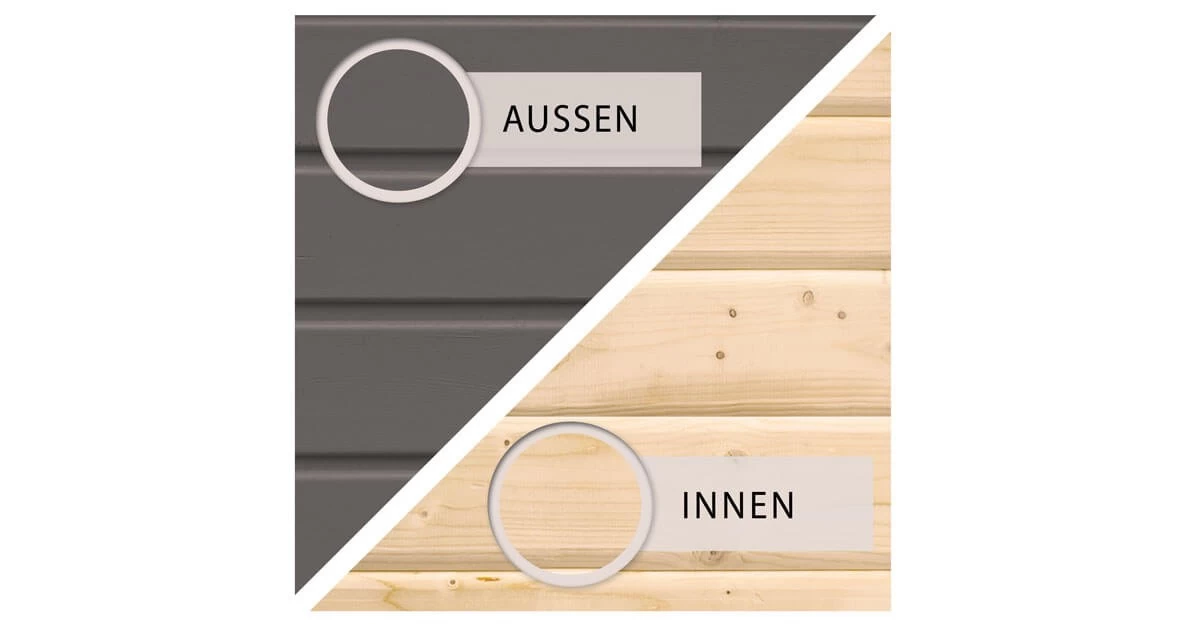 Hinweis: Die Wandinnenseiten, das Dach, der Boden und die Schnittkanten sind aus produktionstechnischen GrĂĽnden nicht endbehandelt und stellen somit einen Unterschied zur AuĂźenseite dar. (Diese mĂĽssen nachbehandelt werden)