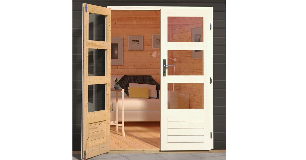 Das moderne Blockbohlenhaus mit Pultdach. Das Bastrup 3 mit 28 mm starken Bohlen besteht aus nordischem Fichtenholz. Ein großer Vorteil dieser Serie ist die patentierte 6-Plus-Eckverbindung. Zusammen sorgt dies nicht nur für eine langlebige, stabile Konstruktion, sondern auch für ein robustes Gesamtbild. Das macht das Gartenhaus Bastrup mit einem Außenmaß von (BxT) 297x237cm zu einem langen, treuen und festen Begleiter im eigenen Garten. Einmal aufgebaut und eingerichtet ist das Haus nicht mehr wegzudenken. In das Innere gelangen Sie durch eine großzügige Doppelflügeltür mit drei Lichtausschnitten je Türflügel. Gesichert wird das Haus mithilfe eines Buntbartschlosses in der Tür. Durch die Lichtausschnitte gelangt Tageslicht in den Innenbereich und lässt das Haus somit nicht nur von außen strahlen. Das Gartenhaus ist in naturbelassen erhältlich und kann durch ein optional erhältliches Anbaudach in der Breite 2m oder 3m im Außenbereich erweitert werden. Dies lässt viel Platz für Ihre Gestaltungsideen. Verstauen Sie zum Beispiel Ihre Gartengeräte im Inneren des Häuschens, um Ihren Garten nach getaner Arbeit ordentlich zu hinterlassen oder nutzen Sie den Innenbereich zur Lagerung Ihrer Gartenmöbel im Winter. Der zusätzliche Platz unter dem Anbaudach kann im Sommer als Schutz vor der Witterung für eine gemütliche Sitzgruppe dienen. Bereichern Sie Ihren Garten mit dem modernen Blockbohlenhaus Bastrup 3.