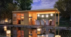 Das moderne Blockbohlenhaus mit Pultdach. Das Bastrup 5 mit 28 mm starken Bohlen besteht aus nordischem Fichtenholz. Ein großer Vorteil dieser Serie ist die patentierte 6-Plus-Eckverbindung. Zusammen sorgt dies nicht nur für eine langlebige, stabile Konstruktion, sondern auch für ein robustes Gesamtbild. Das macht das Gartenhaus Bastrup mit einem Außenmaß von (BxT) 297x297cm zu einem langen, treuen und festen Begleiter im eigenen Garten. Einmal aufgebaut und eingerichtet ist das Haus nicht mehr wegzudenken. Das Gartenhaus ist in naturbelassen erhältlich und kann durch ein optional erhältliches Anbaudach in der Breite 2m, 3m oder 4m im Außenbereich erweitert werden. Dies lässt viel Platz für Ihre Gestaltungsideen. Verstauen Sie zum Beispiel Ihre Gartengeräte im Inneren des Häuschens, um Ihren Garten nach getaner Arbeit ordentlich zu hinterlassen oder nutzen Sie den Innenbereich zur Lagerung Ihrer Gartenmöbel im Winter. Der zusätzliche Platz unter dem Anbaudach kann im Sommer als Schutz vor der Witterung für eine gemütliche Sitzgruppe dienen. Wer möchte nicht gerne an einem verregneten Sommertag oder einem lauen Winterabend lieber die Zeit im eigenen Garten verbringen und der Natur lauschen. Mit dem robusten Gartenhaus Bastrup gehören diese Träume der Vergangenheit an. Der großzügige Innenraum mit den Maßen (BxT) 274x274cm bietet ausreichend Platz für eine individuelle Einrichtung nach dem eigenen Geschmack. Bereichern Sie Ihren Garten mit dem modernen Blockbohlenhaus Bastrup 5.