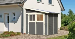 Karibu 19mm Gartenhaus Bomlitz 2 (Anlehnhaus) terragrau