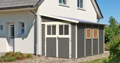 Karibu 19mm Gartenhaus Bomlitz 4 (Anlehnhaus) terragrau