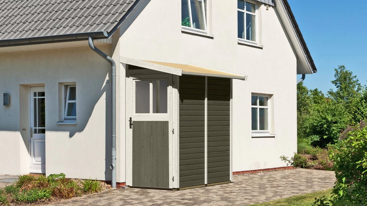 Karibu 19mm Gartenhaus Görlitz (Anlehnhaus) terragrau