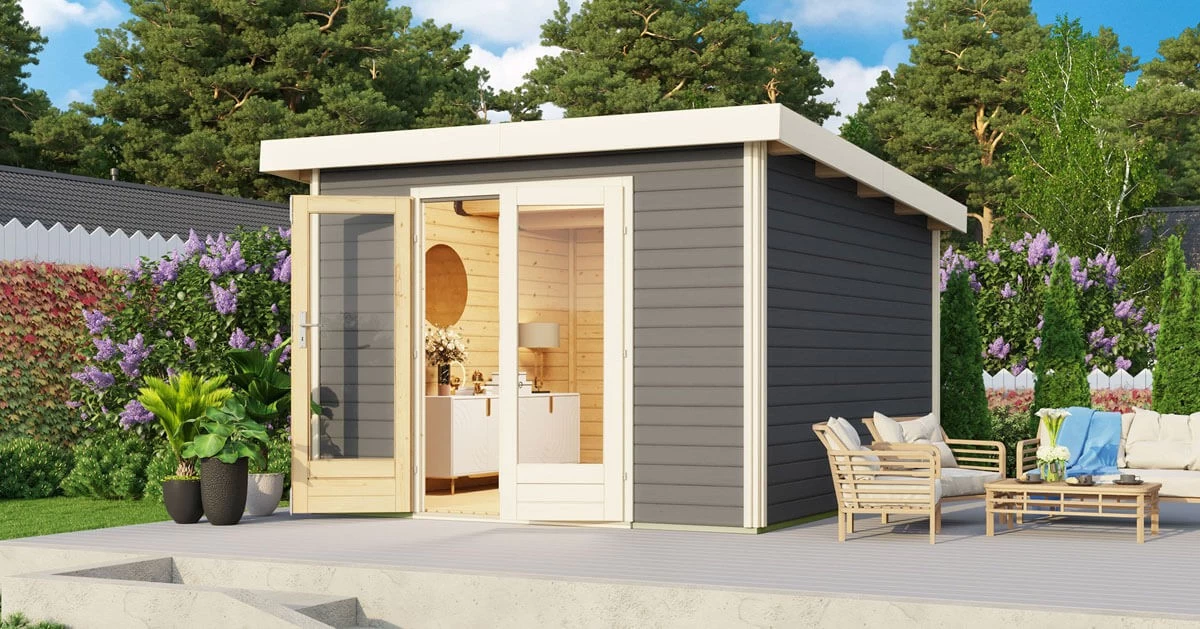 Karibu Gartenhaus 38mm Wandstärke Radeburg 1 terragrau