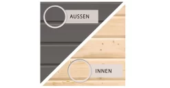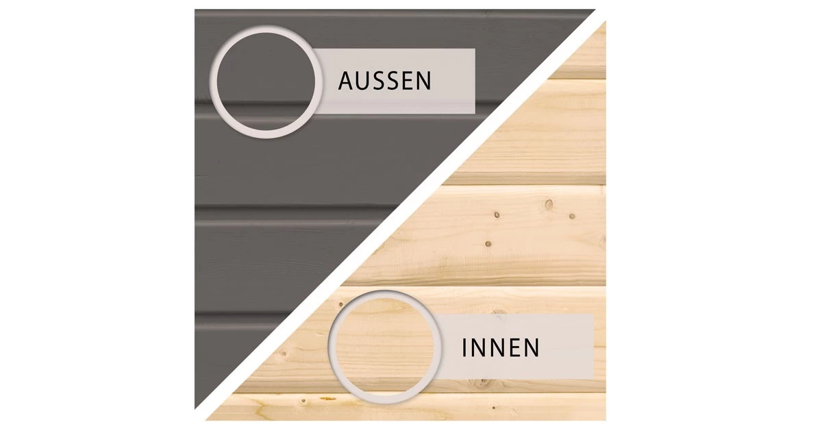 Hinweis: Die Wandinnenseiten, das Dach, der Boden und die Schnittkanten sind aus produktionstechnischen GrĂĽnden nicht endbehandelt und stellen somit einen Unterschied zur AuĂźenseite dar. (Diese mĂĽssen nachbehandelt werden)